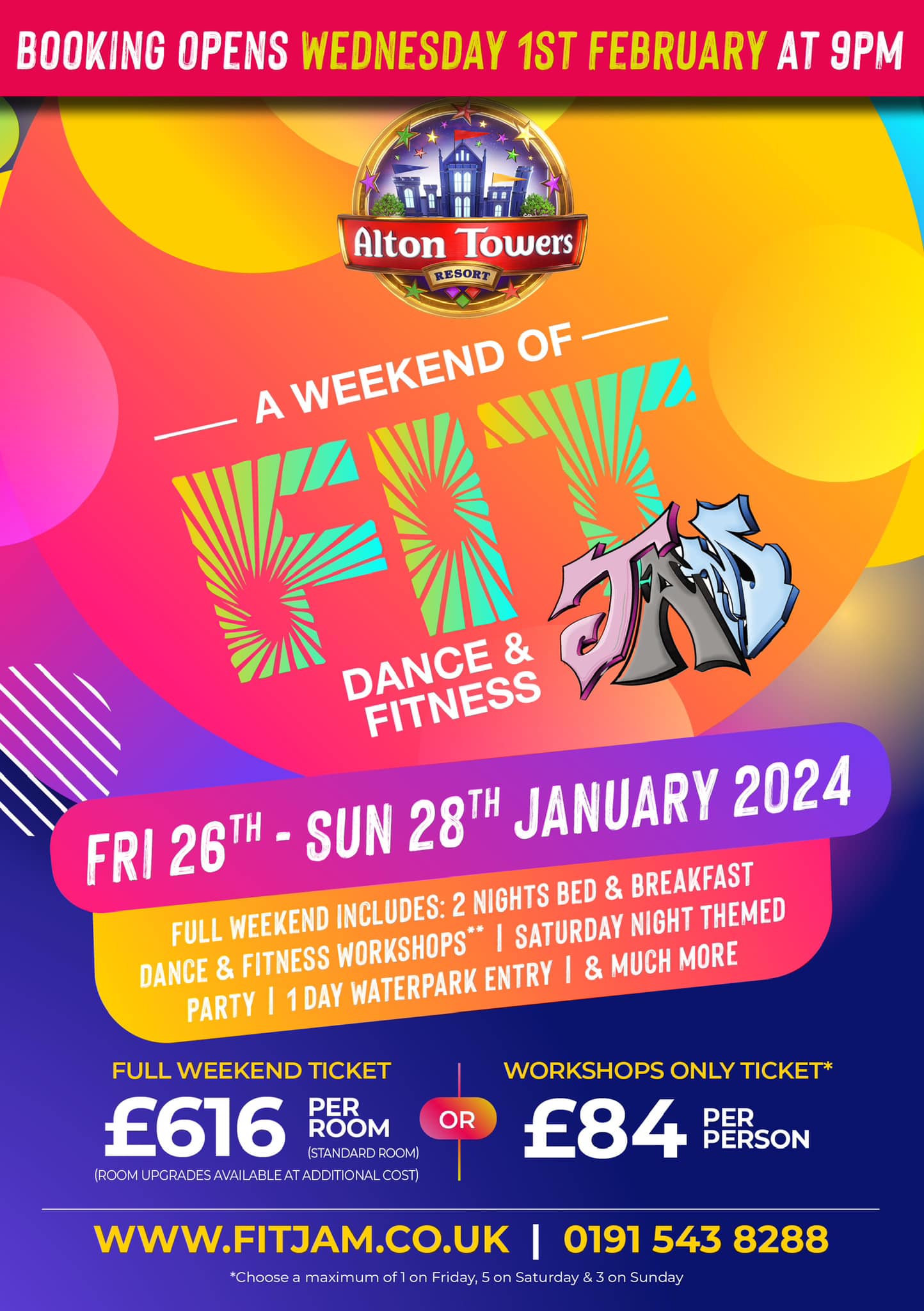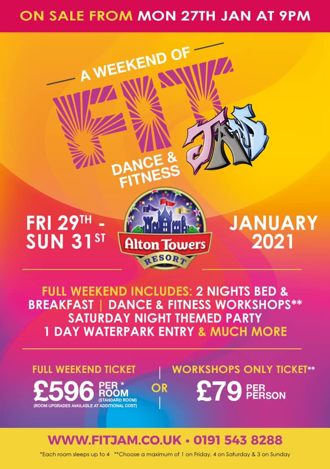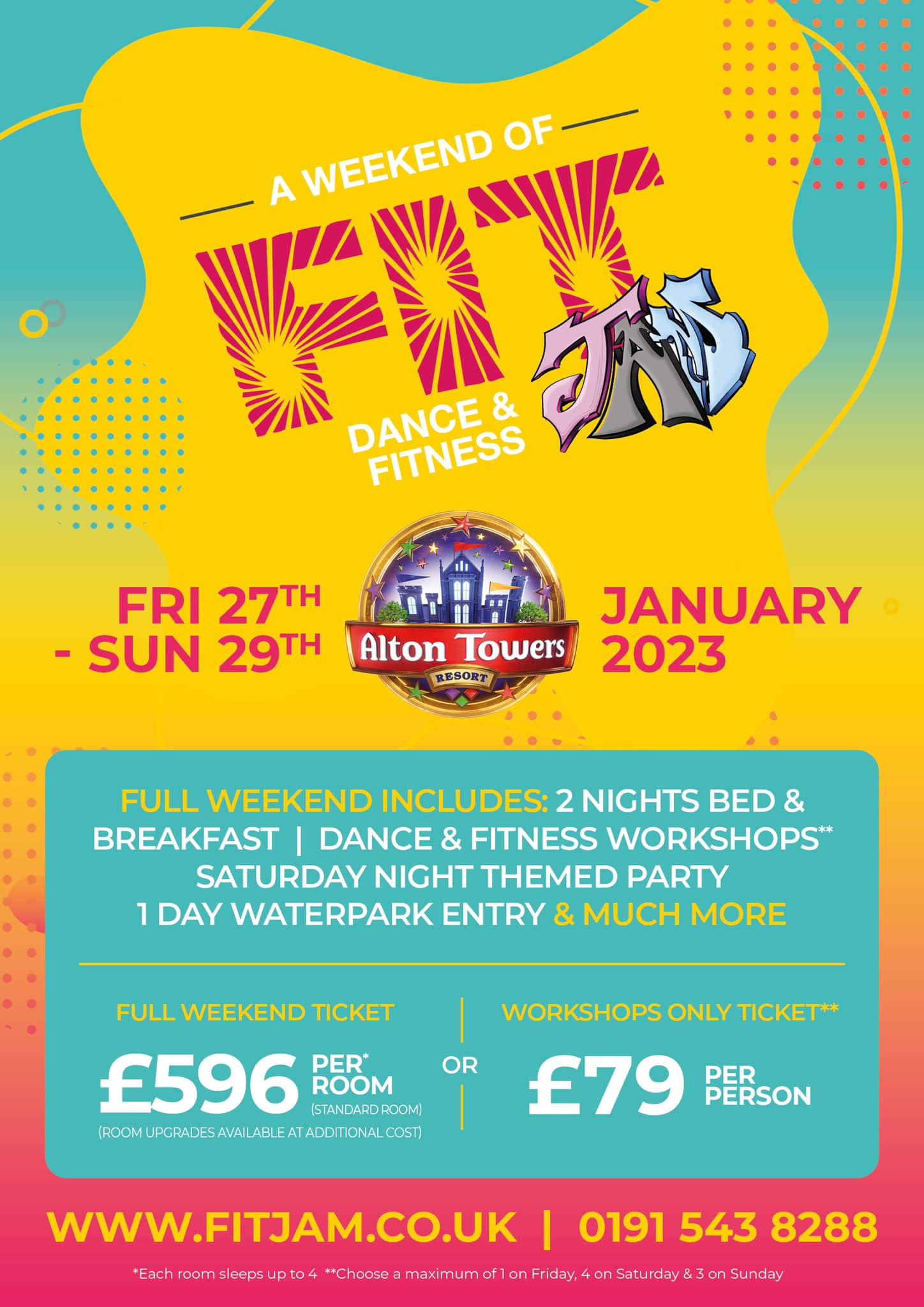 FitJAM is an annual dance and fitness weekend at Alton Towers. With continued success and growth FitJAM has expanded to include more events in Kiddiminster and Sheffield.